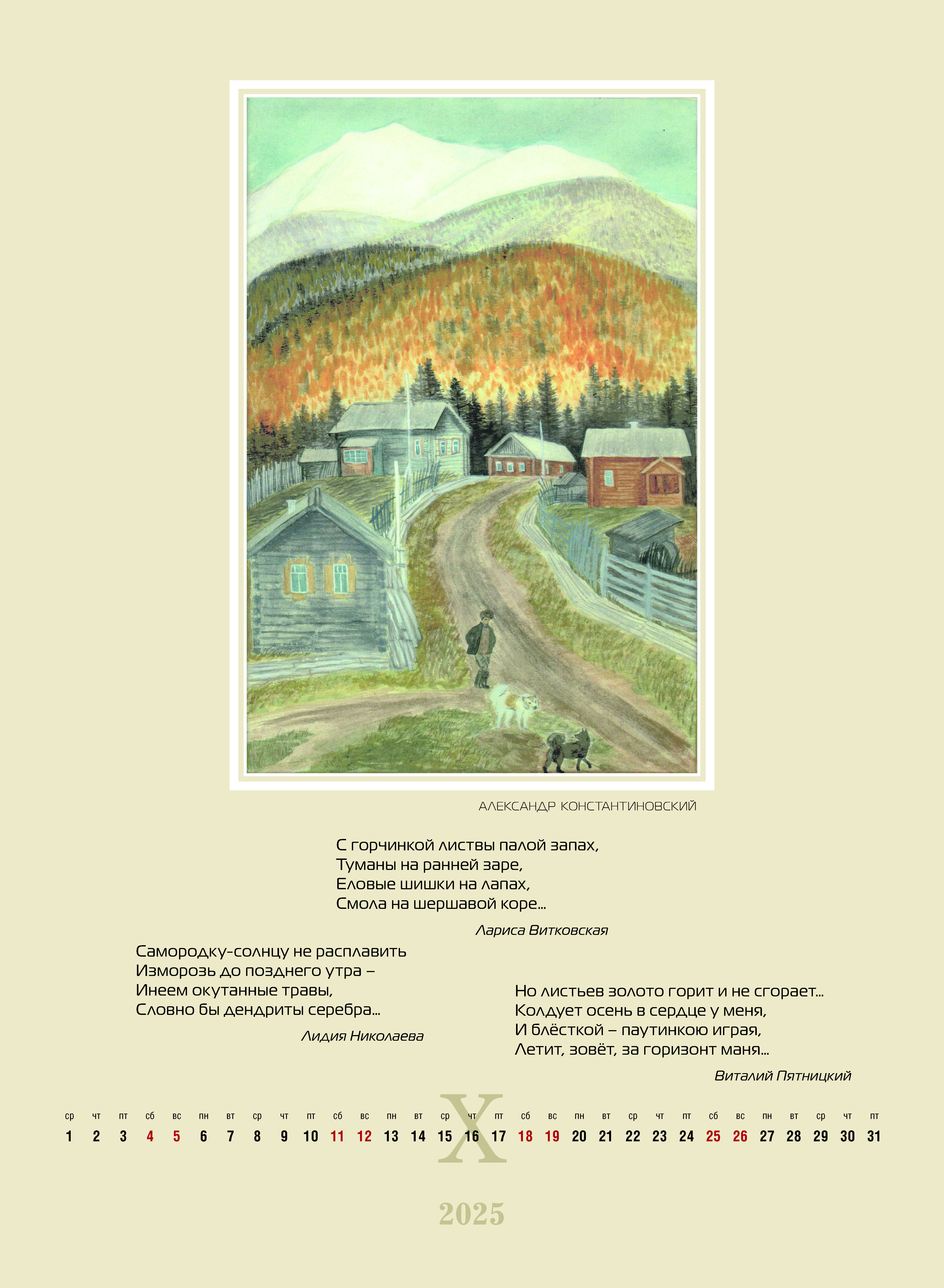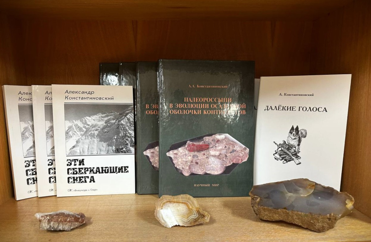 Александр Александрович сам иллюстрировал свои книги. Его прозе созвучны сюжеты авторских рисунков: горные вершины, облака, плывущие с холодного моря, и жители далёких суровых мест. Некоторые работы художника Константиновского украсили календарь 2025 года, посвящённый 90-летию ЦНИГРИ. Всем картинам сопутствуют стихи-подписи, одна из которых особенно подходит к светлой картине Александра Александровича «На Шилке» и сегодняшнему дню памяти: «На закате на прощанье сразу / Небеса расплещут над тобой / Все цвета волынского топаза / Жёлтый, розовый и голубой…» (Лидия Николаева)