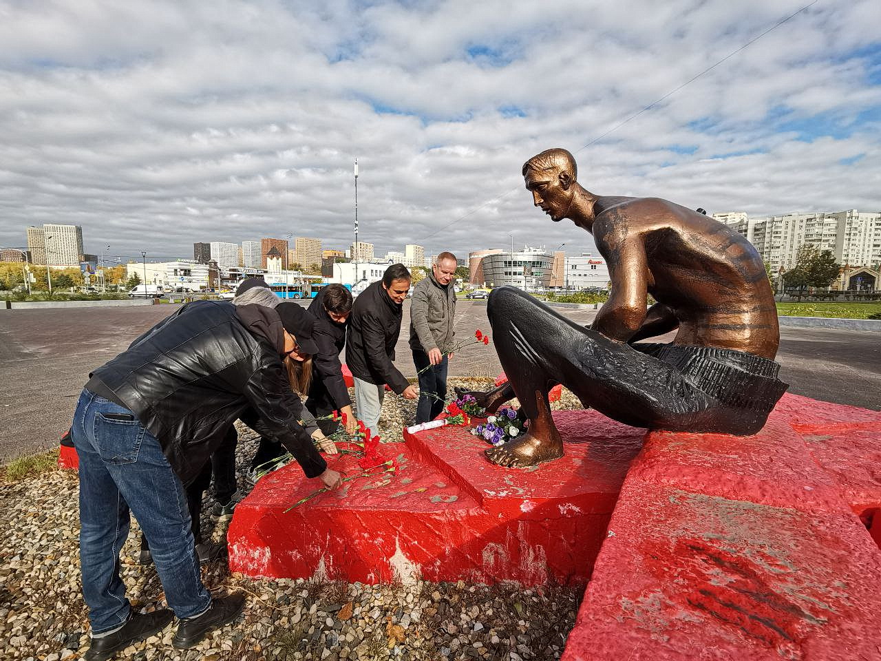 Возложение цветов сотрудниками ЦНИГРИ к памятнику бойцам всех сражений XX века «Солдату Отечества» имеет символичное значение: жители Донецка, Луганска, Запорожья, Херсона всегда стояли с нами плечом к плечу в борьбе с общим врагом. Монумент включает фигуру солдата, за которой расположен воинский редут с памятными плитами, где перечислены названия 49 войн XX века.