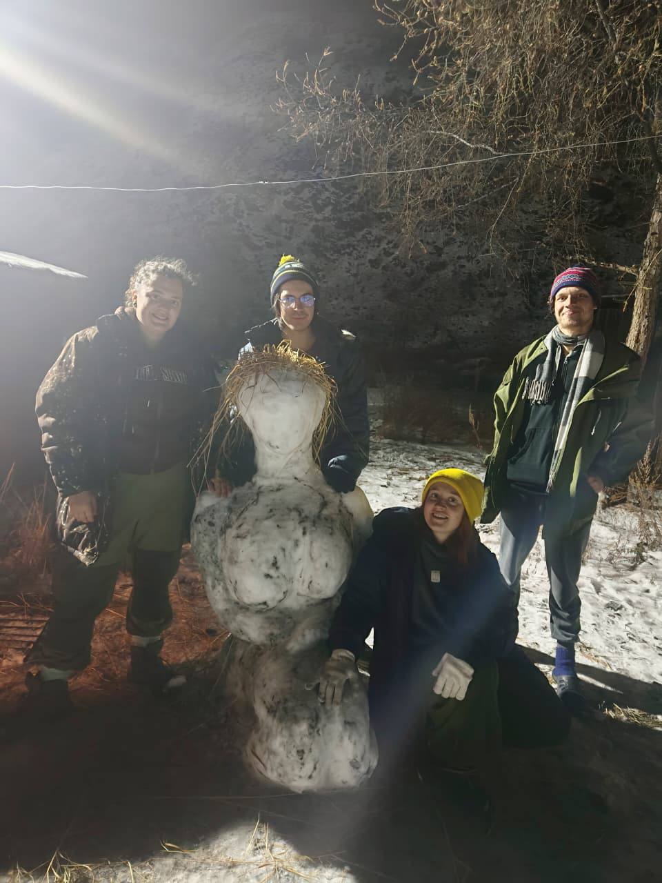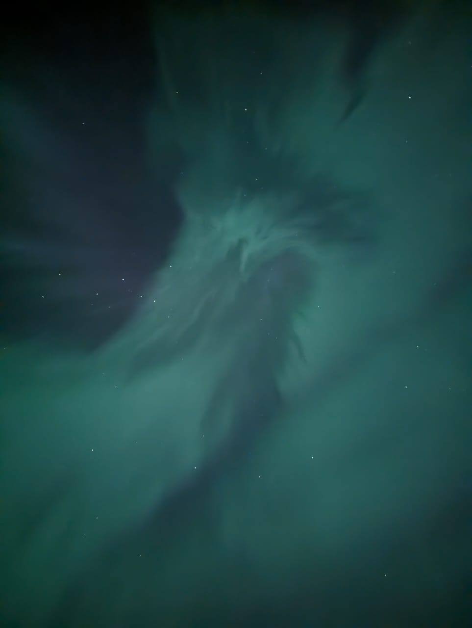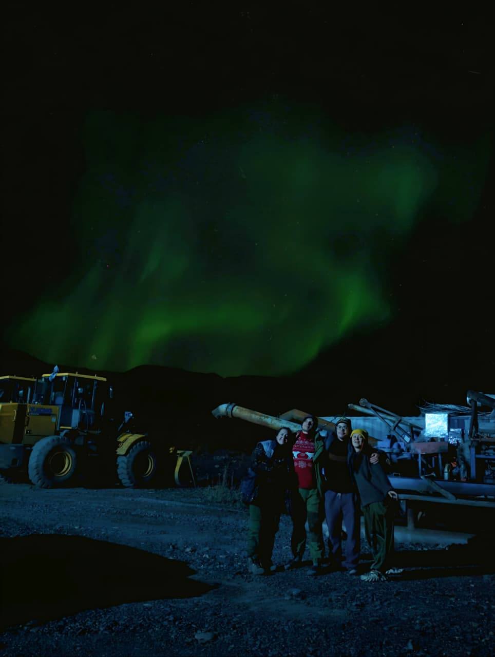 «30 сентября. Потихоньку превращаемся в чай с мёдом. От нашего снеговика осталась лишь маленькая кучка. А ночью такое сияние было!»